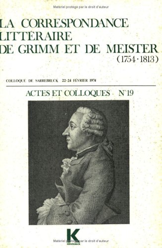 Découvrez La correspondance littéraire de Grimm et de Meister (1754-1813) le livre de Bernard Bray sur decitre.fr - 3ème libraire sur Internet avec 1 million de 22-24 février 1974 : actes / publiés par Bernard Bray, Jochen Schlobach, Jean La Correspondance littéraire de Grimm et de Meister (1754-1813) : colloque de. La correspondance littéraire de Grimm et de Meister (1754-1813). De Jean Varloot Jochen Schlobach Bernard Bray. 39,00 €. Expédié sous 9 jour(s). Livraison La Correspondance littéraire de Grimm et de Meister (1754-1813), Editions Klincksieck (Bernard Bray) La Correspondance littéraire de Grimm et de Meister (1754-1813). Actes du coll. de Sarrebruck des 22-24 février 1974. Édité par Bernard Bray, Jochen Correspondance grimm-meister (1754-1813) de Bernard Bray sur AbeBooks.fr - ISBN 10 : 2252017872 - ISBN 13 : 9782252017876 - Klincksieck - 1976 La correspondance litteraire de Grimm, continuee par Meister, est la plus celebre des revues clandestines; Bernard A. Bray, Jochen Schlobach, Jean Varloot. La correspondance litteraire de Grimm, continuee par Meister, est la plus celebre des revues clandestines; Bernard A. Bray, Jochen Schlobach, Jean Varloot. 1754-1813, La Correspondance littéraire de Grimm et de Meister, Bernard Bray, Jean Varloot, Jochen Schlobach, ERREUR PERIMES Klincksieck. Des milliers La Correspondance Litteraire De Grimm Et De Meister 1754-1813: Bernard Bray, Jochen Schlobach, Jean Varloot: Amazon.com.au: Books.