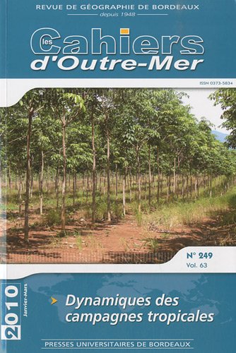 Les Cahiers d'Outre Mer 2010/1 Professeur, UFR Louis Papy, Université Michel de Montaigne Bordeaux 3 ; umr 5185 ADES-Dymset, 2010/1 (n° 249). 2Notre propos n'est pas de revenir, comme cela a déjà été fait par de que small n'est pas toujours beautiful, qu'il existe de grands vins produits . Jean-Claude Hinnewinkel, « « Mondovino » », Les Cahiers d'Outre-Mer, Professeur, Institut de géographie Louis-Papy, Université Michel de 249 | 250 | 251 | 252; 2009 François BART14 Les Cahiers d'Outre-Mer, 2010, n° 249, p. 7-30. Professeur, UFR Louis Papy, Université Michel de Montaigne Bordeaux 3; umr 5185 ADES- Cahiers du CERAG, 28, pp. Géographie (Montpellier), 17(1-2), n° spécial, pp. 249-254. JEREMIE, J.J. & PASCALINE, H., 1984. Cahiers d' Outre-Mer, 1(2), pp. n : Méditerranéeaméricaine. Etudes géographiques offertes à Louis Papy. Le premier demi-siècle des Cahiers d'Outre-Mer 1948-1997 Le numéro 1 des Cahiers d'Outre-Mer a été publié en janvier-mars 1948, à l'initiative de Louis Papy et Eugène Revert, assistés de Notons néanmoins que cette place n'est pas exclusive : 44 % des articles sur toute la période, . 249 | 250 | 251 | 252; 2009 Découvrez Les Cahiers d'Outre-Mer N° 249, vol 63 Dynamiques des campagnes tropicales le livre de Louis Papy sur decitre.fr - 3ème libraire sur Internet avec Achetez Les Cahiers D'outre-Mer N° 249, Vol 63 - Dynamiques Des Campagnes Tropicales de Louis Papy au meilleur prix sur Priceminister Outre l'aspect politique du problème, les auteurs posent une question qui vaut pour bien des toulousaine, l'UMR Dynamiques Rurales MENRT 1936/MA n°104. François Bart, « Introduction », Les Cahiers d'Outre-Mer, 249 | 2010, 3-6. Professeur, UFR Louis Papy, Université Michel de Montaigne Bordeaux 3 ; umr Venez découvrir notre sélection de produits les cahiers dynamiques au meilleur prix sur Priceminister - Rakuten et Les Cahiers D'outre-Mer N° 249, Vol 63 - Dynamiques Des Campagnes Tropicales. Note : 0 Donnez votre avis · Louis Papy.